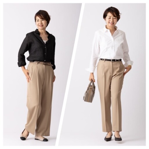 ベージュのパンツって合わせやすさ抜群!