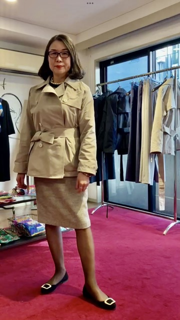 ショートトレンチのエレガントな着こなしは